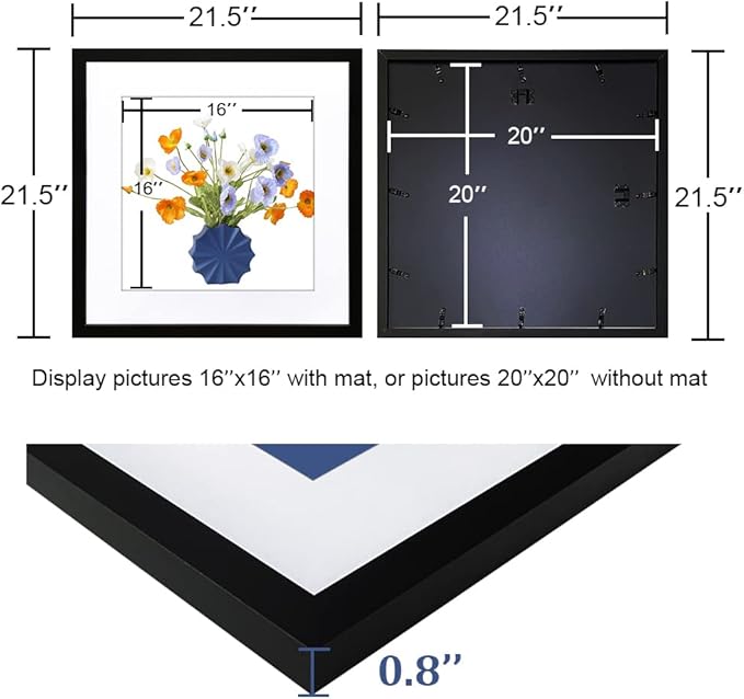 THREELOVE 20x20 Frame Black, Display Picture 16x16 with mat or 20x20 Without mat, Photo Poster Picture Frame Wall Mounting Home Decor, 3 PCS