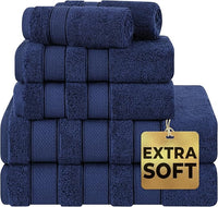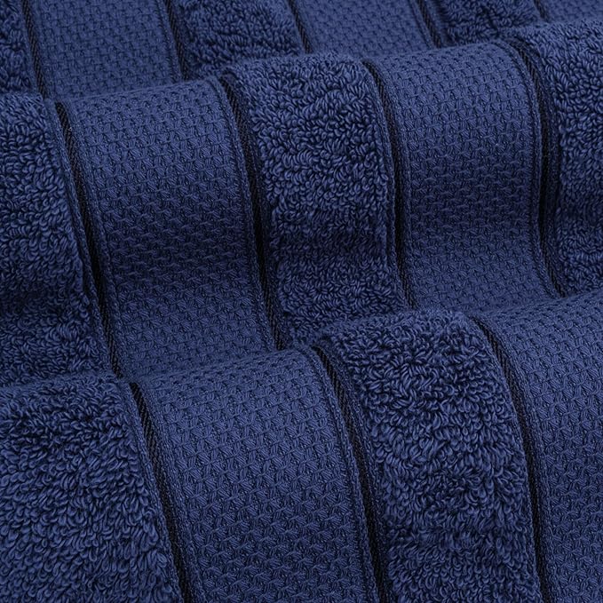 American Soft Linen Salem Turkish Bath Towel Set, 100% Cotton 600 GSM 6 Piece Towels for Bathroom, 2 Bath Towels 2 Hand Towels 2 Washcloths, Navy Blue