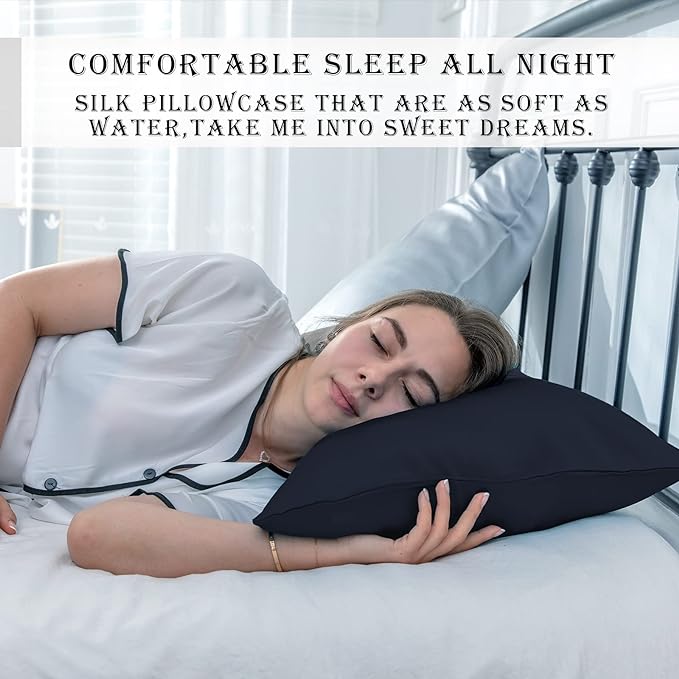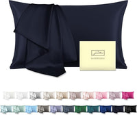 Mulberry Silk Pillowcase for Hair and Skin Pillow Case with Hidden Zipper Soft Breathable Smooth Cooling Silk Pillow Covers for Sleeping (Navy Blue, King(20"X 36"))