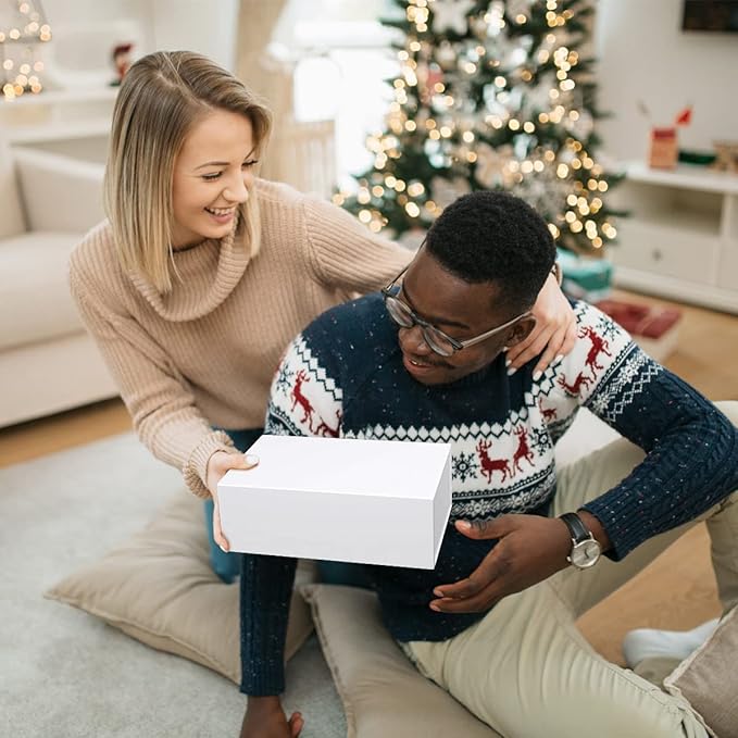 White Gift Box 10" x 6" x 3" with Magnetic Closure Lid Gift Boxe for Presents,Bridesmaid Gifts Boxes,Cute Box,Birthday Box,Luxury for Gift Packaging, Magnetic Gift Boxe for Wrapping Gifts (White)