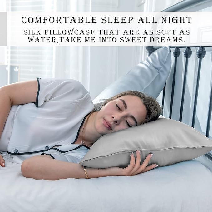 Silk Pillowcase for Hair and Skin,Soft,Breathable and Sliky 100% Queen Silk Pillow Case Set of 2,Both Sides Natural Mulberry Silk Pillowcases with Hidden Zipper(Queen Size 20"X 30",2pcs)