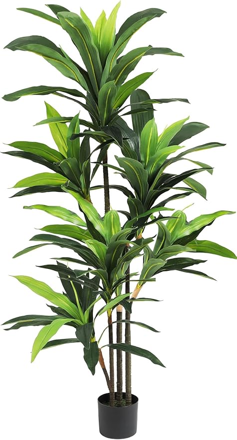 VIAGDO Dracaena Silk Plant Artificial 5ft Faux House Plants Evergreen Dracaena Marginata Fake Yucca Palm Trees in Pot Realistic Dragon Tree for Living Room Home Office Decor Indoor Outdoor