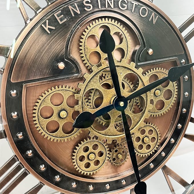 Real Moving Gears Wall Clock Large Modern Metal Clocks for Living Room Decor, Industrial Steampunk Unique Vintage Rustic Decorative Clock for Home Farmhouse Office, 27.6 Inch,Red Copper Roman