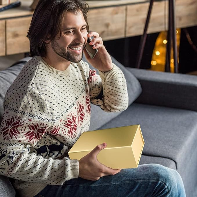Gold Gift Boxes 10"x6"x3" with Magnetic Closure Lid Gift Boxes for Presents,Bridesmaid Gifts Box,Cute Box,Luxury for Gift Packaging, Magnetic Gift Box for Wrapping Gifts (Gold/5PCS)