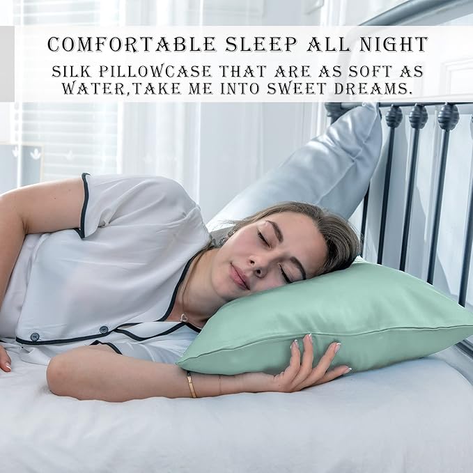 SUATIEN Mulberry Silk Pillow Cases Queen Size Silk Pillowcase for Hair and Skin with Zipper Soft Breathable Smooth Cooling Silk Pillow Case for Sleeping,Gifts for Women (Sage Green,20"X 30",1Pcs)