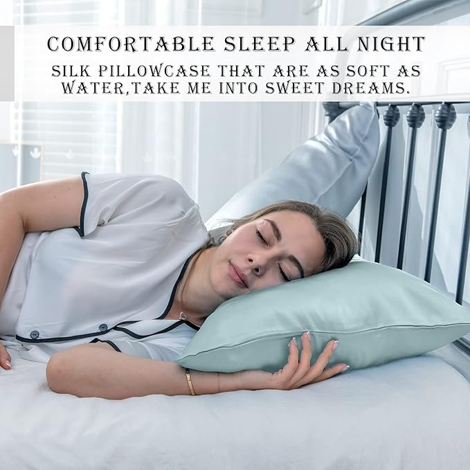 Silk Body Pillowcase Mulberry Silk Pillow Cases with Zipper Soft Breathable Smooth Cooling 20x54 inches Pillowcase for Sleep (Blue Haze,20"X 54",1Pcs)