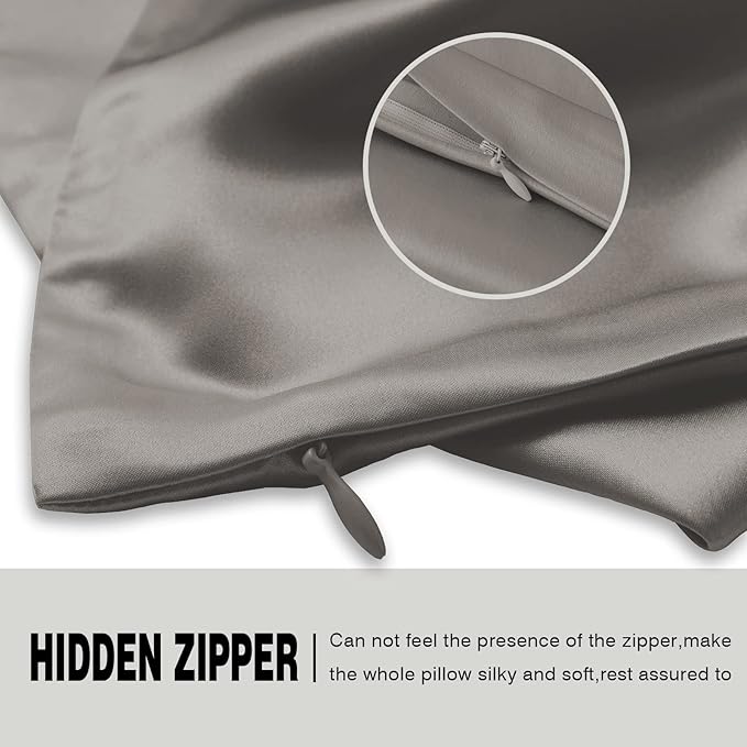 Silk Body Pillowcase Mulberry Silk Pillow Cases with Zipper Soft Breathable Smooth Cooling 20x54 inches Pillowcase for Sleep (Gray,20"X 54",1Pcs)