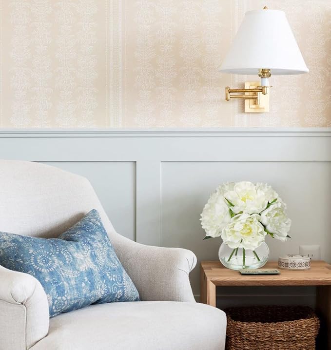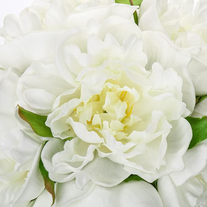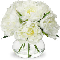 Hollyone Fake Flowers White Peonies Artificial Flowers Faux Flowers with Vase Peony Silk Flower Arrangements in Glass Vase with Faux Water for Home Decor Bathroom Table Centerpiece Shelf Decorations