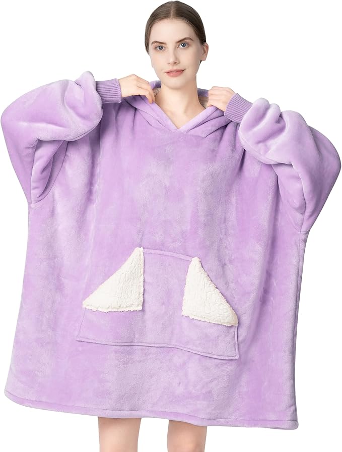 Touchat Wearable Blanket Hoodie, Oversized Sherpa Blanket Sweatshirt with Hood Pocket and Sleeves, Super Soft Warm Plush Hooded Blanket for Adult Women Men (Purple)