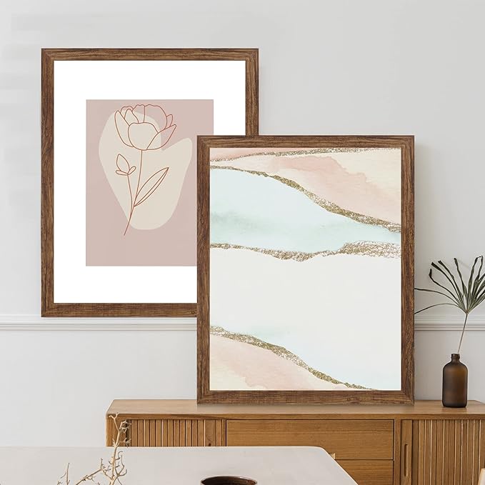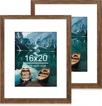 16x20 Frames Set of 2, Rustic Brown Wood Style - Display 16 x 20 Picture without Mat or 11x14 Picture with Mat, Wall Mounting Horizontal and Vertical