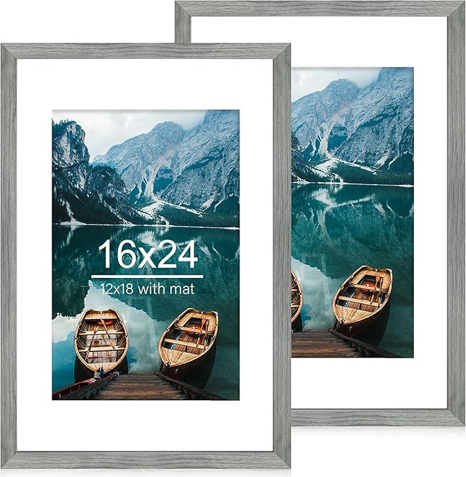 16x24 Frame Set of 2, Rustic Grey Wood Style - Display 16 x 24 Picture without Mat or 12x18 Picture with Mat, Wall Mounting Horizontal and Vertical