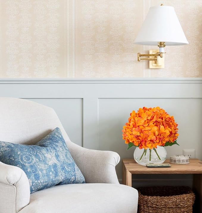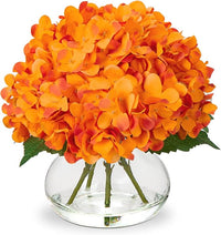Hollyone Hydrangea Artificial Flowers in Vase Orange Silk Fake Flowers Arrangements with Glass Vase with Faux Water Faux Floral Bulk Bouquet for Office Table Centerpiece Shelf Home Decoration Sale