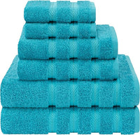 American Soft Linen Luxury 6 Piece Towel Set, 2 Bath Towels 2 Hand Towel 2 Washcloths, 600 GSM 100% Cotton Turkish Towels for Bathroom, Aqua Blue Towel Sets