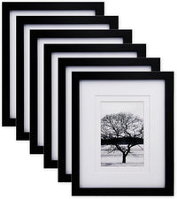 Egofine 8x10 Picture Frames Set of 6, Made of Solid Wood Covered by Plexiglass Display 4x6 and 5x7 with Mat or 8x10' without Mat, for Table Top Display and Wall Mounting Photo Frame Black