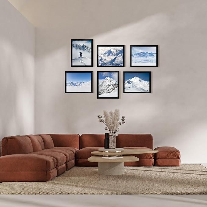 Egofine 11x14 Picture Frames Made of Solid Wood 6 PCS Black Covered by Plexiglass - for Table Top and Wall Mounting for Pictures 8x10 or 5x7 with Mat Horizontally or Vertically Display Photo Frame