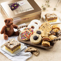 Dulcet Gift Basket - I'm Sorry Gifts For Her - Apology Gift Basket - Teddy Bear with Baked Gourmet Food Snacks - Crumb Cake, Assorted Cookies, and Rugelah - Bake Your Way Back to Her Heart