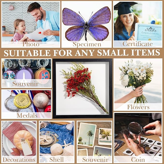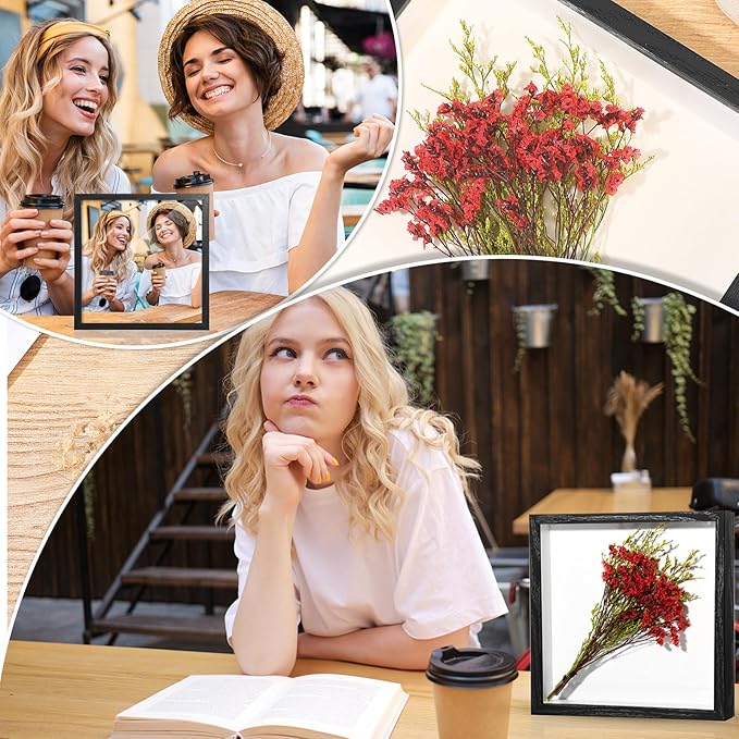 Ripeng 16 Pack Shadow Box Frame Display Case Picture Frame for Wedding Bouquet, Back to School Crafts, Memorial Photos, Ticket, Teacher, Medal, DIY Wall or Tabletop Gift Decor(8 x 8 Inch,Black)