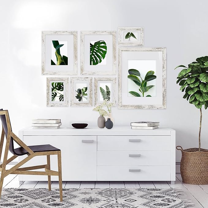 5x7 Picture Frame Set of 2, Made of Real Glass and Distressed White Wooden Frame - Display Pictures 4x6 with Mat or 5x7 Without Mat, 5 by 7 Photo Frame for Wall or Tabletop Display