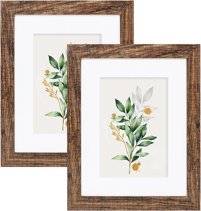 8x10 Picture Frame Set of 2, Made of Real Glass and Rustic Brown Wooden Frame - Display Picture 5x7 with Mat or 8x10 Without Mat, 8 by 10 Photo for Wall or Tabletop