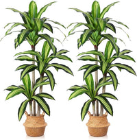 Artificial Plants, 5 Ft Dracaena Tree Faux Plants Indoor Outdoor Decor Fake Tree with Woven Seagrass Basket Plants for Home Decor Office Living Room Porch Patio Housewarming 2 Pack Sale