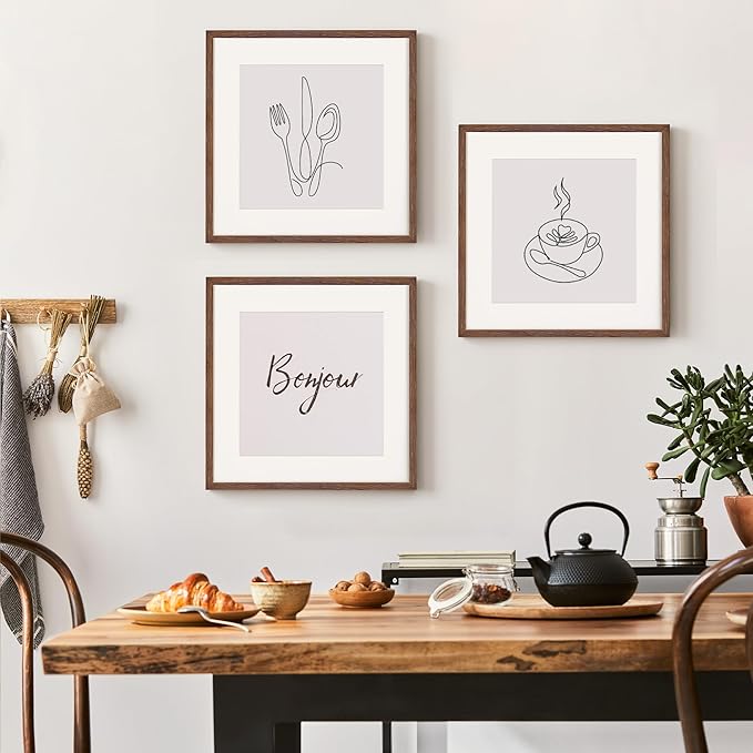 16x16 Picture Frames for Wall, Oak Wood 16"x16" Photo Frame, Square 16 x 16 Frame Matted to 12 x 12 - Tempered Real Glass, Rustic 16x16 Wood Frames (Walnut Color, 3 Pack)