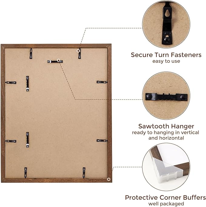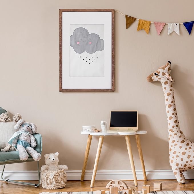 Fun Memories 11x17 Picture Frame, Natural Solid Oak Wood Frame 11 x 17 with Tempered Glass, 11''x17'' Matted for 8x12 Picture, Minimalist Wooden by Poster Art Walnut