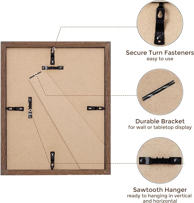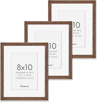 Solid Oak Wood Frame 8x10, 8 x 10 Frame Set of 3, 8"x10" Photo Frames with Stand, 8 by 10 Frame for Wall & Tabletop Display, 8x10 Wood Frame, Walnut Color