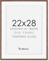 22x28 Picture Frame in Walnut, 22 x 28 Poster Frame for Wall, Solid Oak Wood Picture Frame 22"x28" with Glass, 22x28 Frame Matted to 18x24, 28x22 Wood Frame, 22 by 28 Art Frame, Walnut Color, 1 Pack