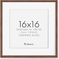 16x16 Picture Frames for Wall, Square Picture Frame 16 x 16 - Solid Oak Wood, Tempered Glass, 16x16 Frame Matted to 12x12, 16"x16" Wood Photo Frames - Walnut Color, 1 Pack