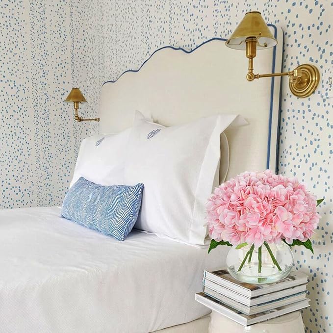 Hollyone Hydrangea Artificial Flowers with Glass Vase Pink Silk Faux Flowers Arrangements with Clear Faux Water Fake Floral Bulk Bouquet for Home Decor Table Centerpiece Decorations