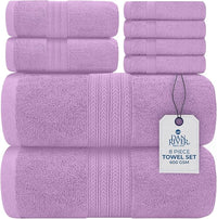 DAN RIVER 8 PC Luxury Bath Towels for Bathroom, 2 Bath, 2 Hand, and 4 Wash Cloths, 600 GSM 100% Ring Spun Cotton Towel Set, Highly Absorbent, Gym, Hotel, and Spa, Lavendar