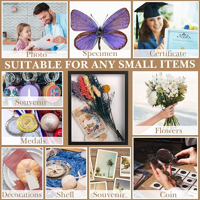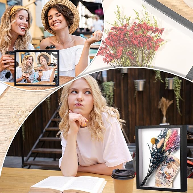 Ripeng 16 Pack Shadow Box Frame Display Case Picture Frame for Wedding Bouquet, Back to School Crafts, Memorial Photos, Ticket, Teacher, Medal, DIY Wall or Tabletop Gift Decor(8 x 10 Inch,Black)