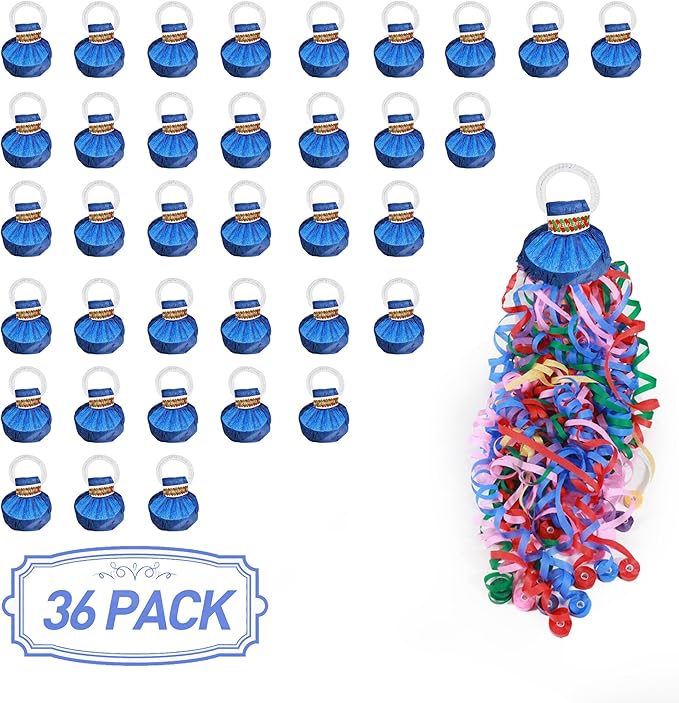 No Mess Streamers Poppers,36Pack Colorful Party Favors Confetti Shooters,Wedding,nye,School Opening,Graduation,Retirement Party (blue multicolor 36pack)