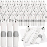 Supernal Silver Plastic Silverware,Rolled Plastic Silverware,Pre Rolled Napkins with Plastic Cutlery Set,Wrapped Plastic Cutlery Set with Napkin,Silverware Set Disposable Dinnerware Set 120 Guests