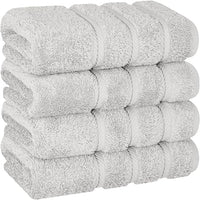 American Soft Linen Luxury Hand Towels for Bathroom, 600 GSM 100% Cotton Turkish 4 Piece Hand Towel Set, 600 GSM Hand Face Towels for Kitchen, Silver Grey Hand Towels