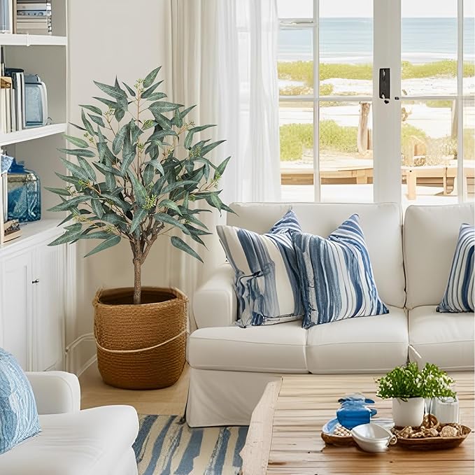 Briful Artificial Eucalyptus Tree Realistic Potted Dutch Faux Eucalyptus Tree in Black Pot 3ft Porch Floor Fake Tree for Home Decor Indoor Outdoor Farmhouse Wedding