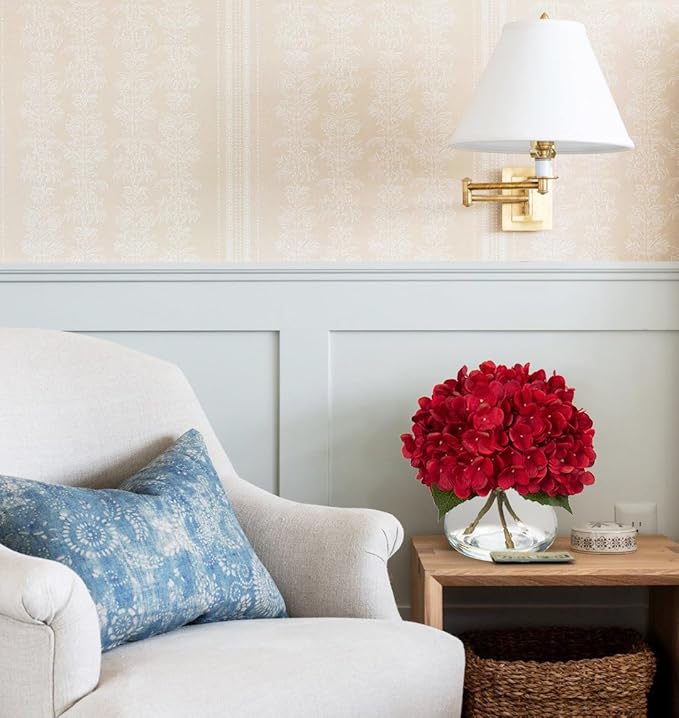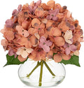 Hollyone Hydrangea Artificial Flowers in Vase Red Silk Fall Fake Flowers Arrangements with Glass Vase with Faux Water Faux Floral Bulk Bouquet for Office Table Centerpiece Shelf Home Decorations Sale