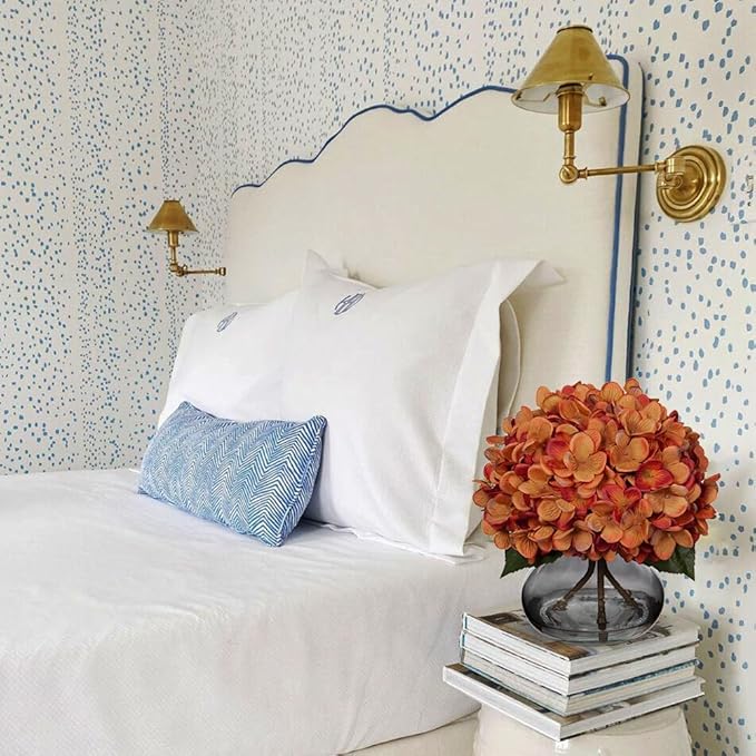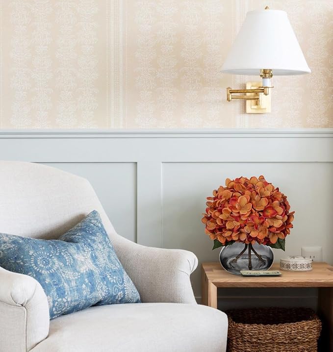 Hollyone Fall Hydrangea Artificial Flowers for Decoration with Vase Orange Silk Fake Flowers Arrangements in Glass Vase with Faux Water Faux Autumn Festival Table Centerpiece Home Decorations for Home