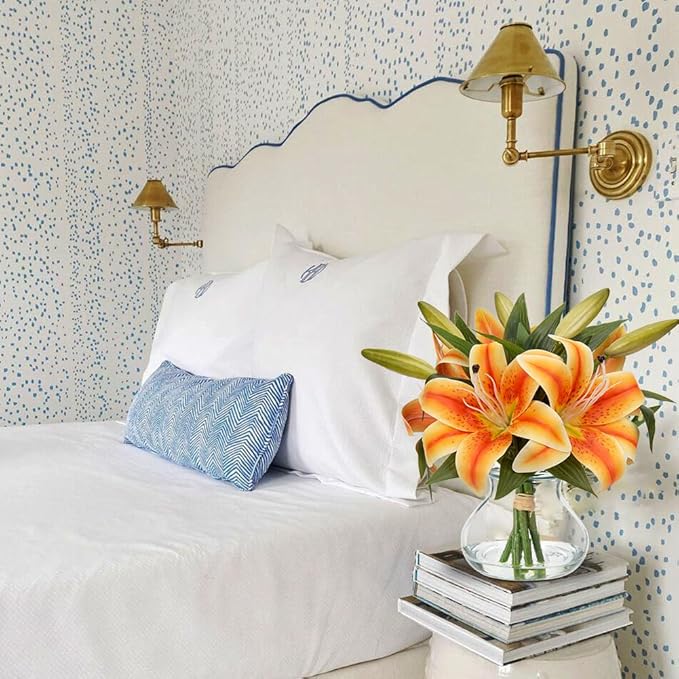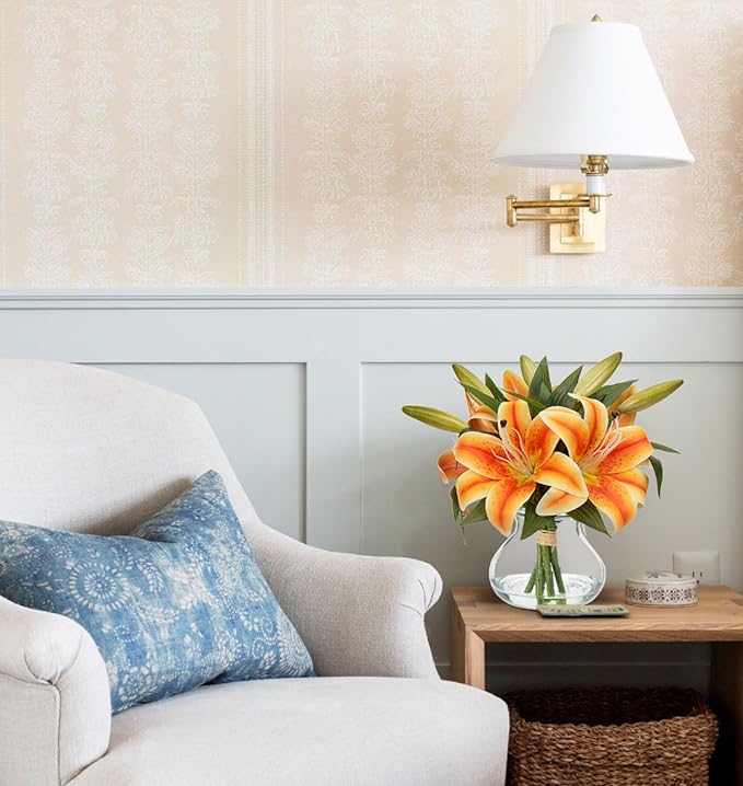 Hollyone Tiger Lily Fall Flowers Artificial for Decoration in Vase Real Touch Orange Autumn Silk Faux Flowers Arrangements with Glass Vase with Fake Water Lily Centerpiece Fall Decorations for Home