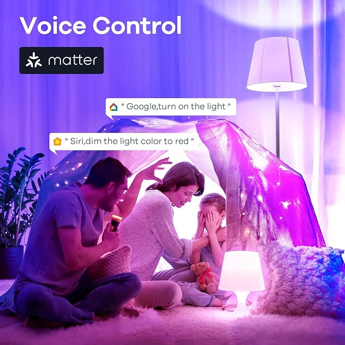 Linkind Matter Smart Light Bulb, WiFi Smart Bulbs with Remote, Smart Bulb Work with Apple Home, Alexa, Google Home, SmartThings, RGBTW Color Changing Bulbs Music Sync, 2.4Ghz A19 E26 60W 800LM 4 Pack