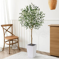 Artificial Olive Tree with White Tall Planter, 5ft Tall Potted Decorative Fake Olive Tree, Large Faux Silk Tree for Home Office Floor Room Decor Plant Indoor Outdoor, Housewarming Gift