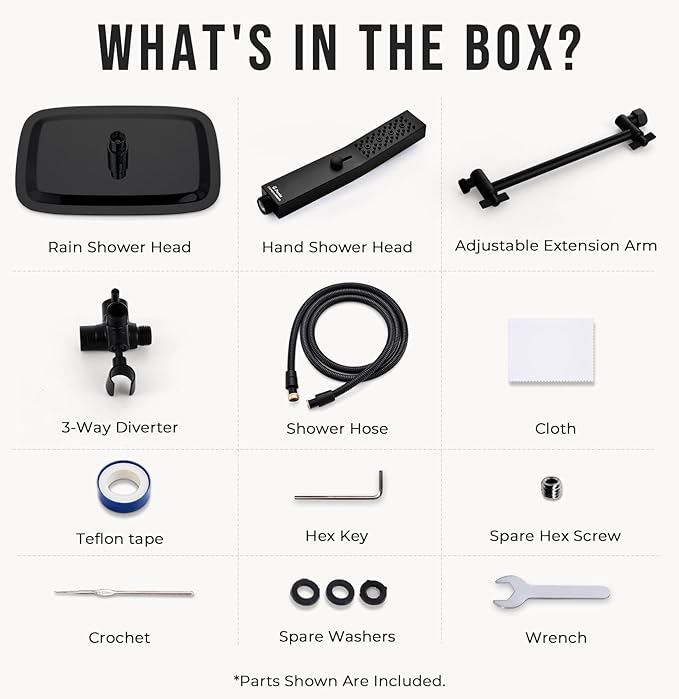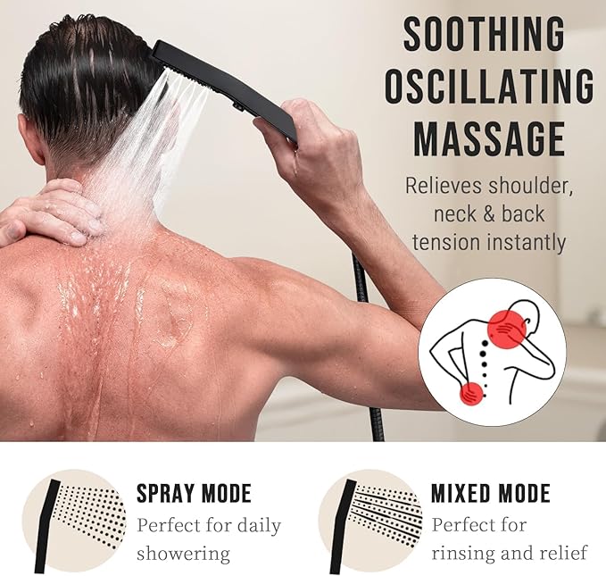 G-Promise All Metal 12 Inch Dual Square Shower Head with Handheld Spray Combo, Rain Shower Head, Adjustable Extension Arm, 3-Way Diverter, 71 Inch Extra Long Hose - A Bathroom Upgrade (Matte Black)