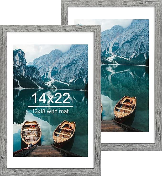 14x22 Picture Frame Set of 2, Rustic Grey Wood Style - Display 14 x 22 Picture without Mat or 12x18 Picture with Mat, Wall Mounting Horizontal and Vertical