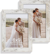 6x9 Picture Frame Set of 2, Made of Real Glass and Distressed White Wooden Frame - 6 by 9 Photo for Wall or Tabletop Display