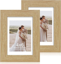 4x6 Picture Frame Set of 2, Made of Real Glass and Natural Oak Wooden Frame - Display Pictures 3.5x5 with Mat or 4x6 Without Mat, 4 by 6 Photo Frame for Wall or Tabletop Display