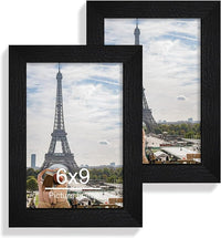 6x9 Picture Frame Set of 2, Made of Real Glass and Rustic Black Wooden Frame - 6 by 9 Photo for Wall or Tabletop Display