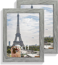 8x11 Picture Frame Set of 2, Made of Real Glass and Rustic Grey Wooden Frame - 8 by 11 Photo for Wall or Tabletop Display