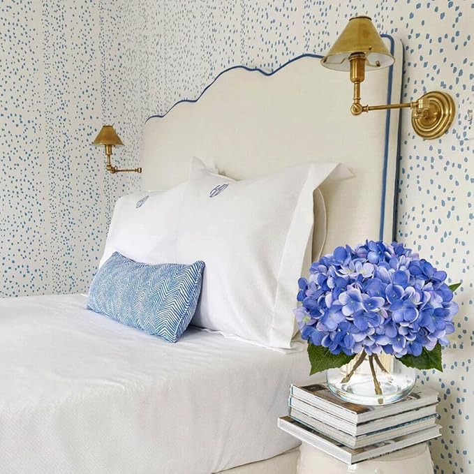 Hollyone Hydrangea Artificial Flowers with Vase Slate Blue Silk Fake Flowers Arrangements Floral Bulk Bouquet in Glass Vase with Faux Water for Home Bathroom Office Table Centerpiece Shelf Decorations Sale
