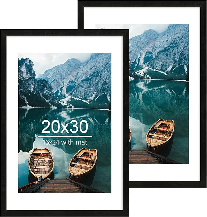 20x30 Frame Set of 2, Rustic Black Wood Style - Display 16x24 Picture with Mat or 20 x 30 Poster without Mat, Wall Mounting Horizontal and Vertical