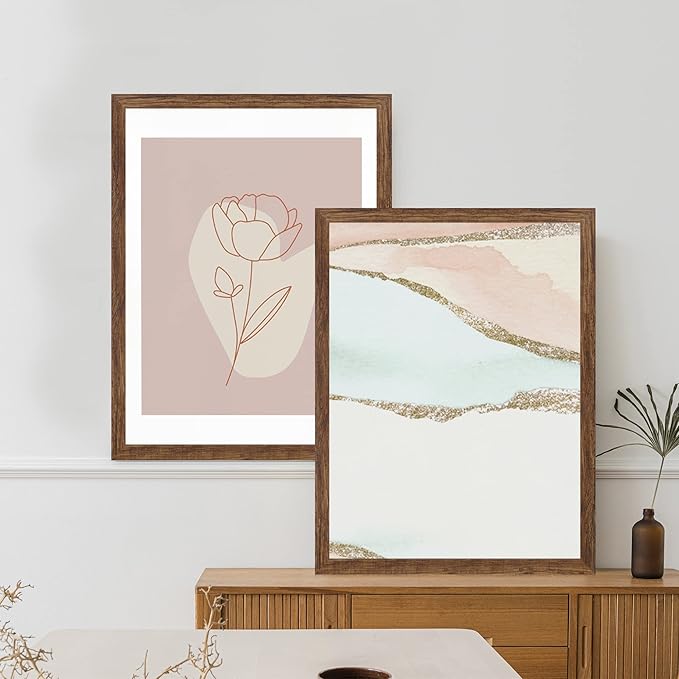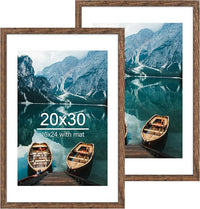 20x30 Frame Set of 2, Rustic Brown Wood Style - Display 16x24 Picture with Mat or 20 x 30 Poster without Mat, Wall Mounting Horizontal and Vertical